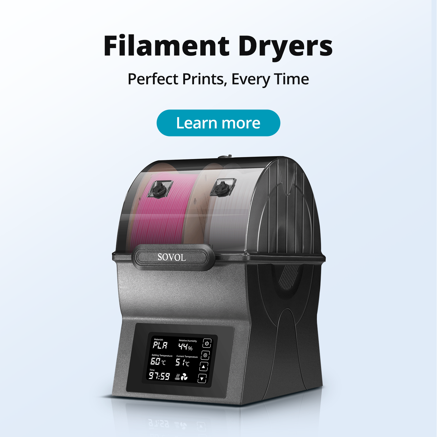 The Sovol SV08 Max's eddy current scanning ensures precise, contactless bed leveling across its 500x500mm platform, improving print quality and reliability.