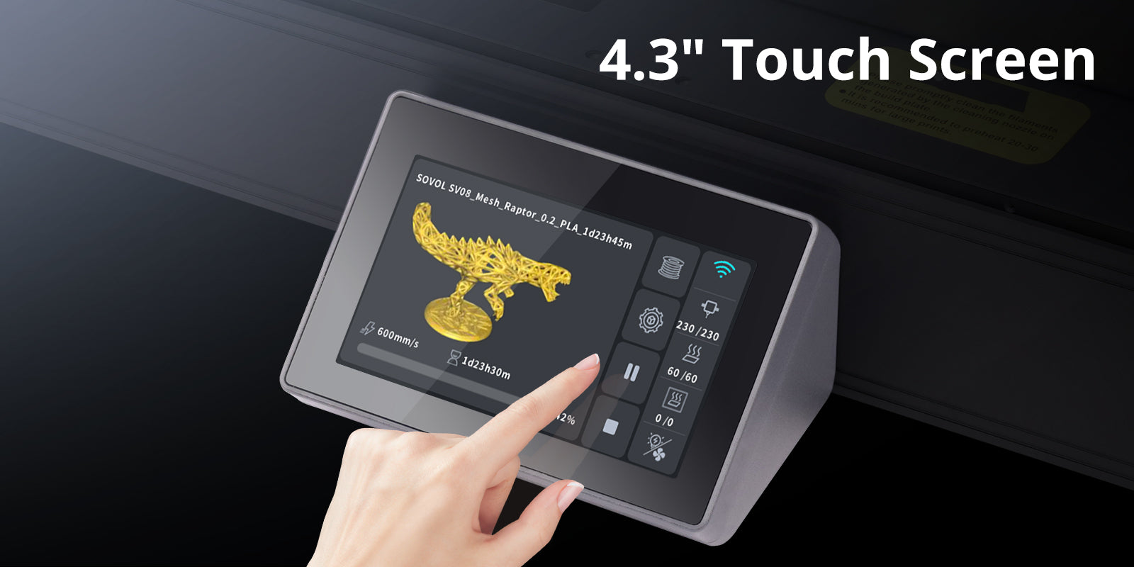 Equipped with a 8mm thick aluminum bed and 1300W of power, the SV08 Max’s hotbed delivers rapid and even heating across the entire surface. The reinforced structure minimizes warping, ensuring consistent adhesion and reliable prints — even on large models.