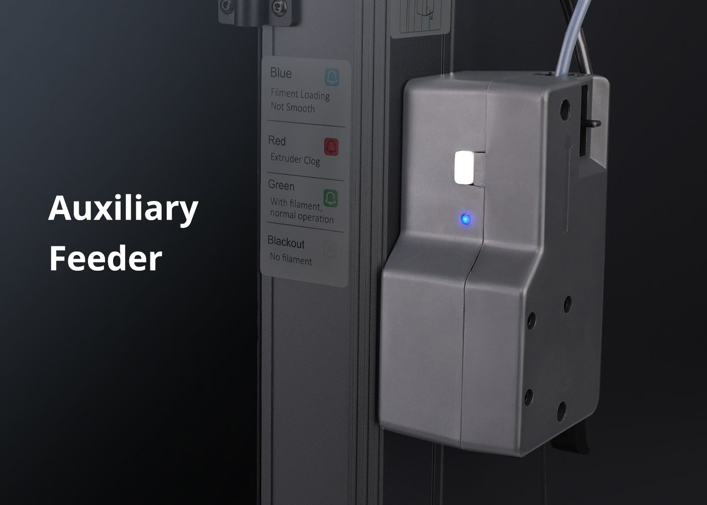 The Smart Auxiliary Feeder System not only assists with smooth filament feeding, but also features tangle detection and clog detection to ensure uninterrupted printing. It actively monitors filament flow and prevents issues before they affect your print.