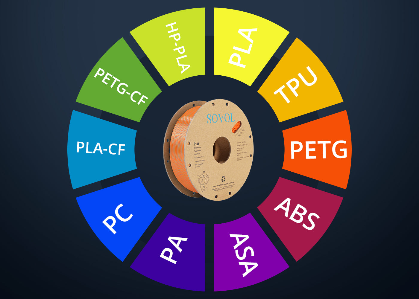 PLA, PETG, TPU, PETG-CF, ABS, ASA, PA, PC